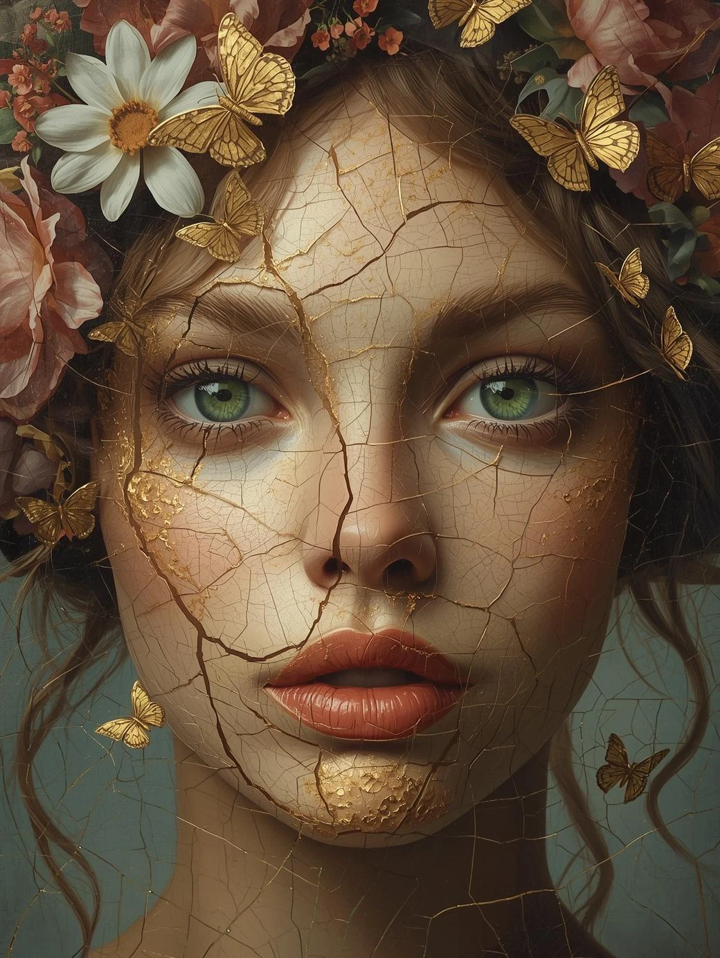 Mixed Media Ink & Oil Paint on Canvas with diamond dust and gold leaf