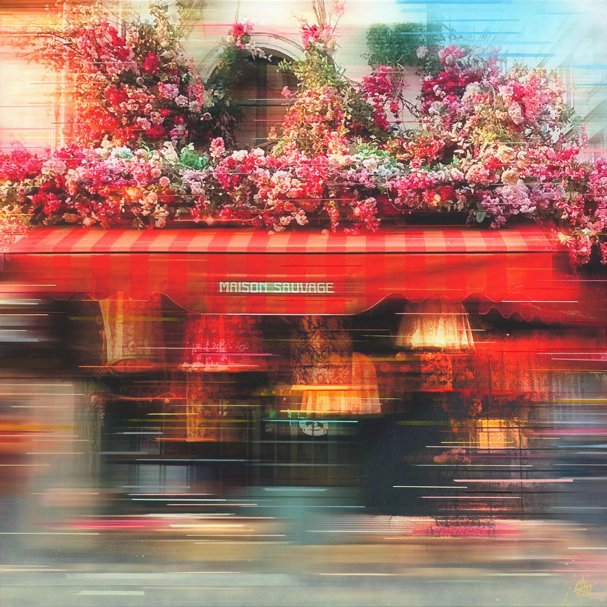 Original photography, giclée printed on to canvas then overlaid with acrylic and spray paints, screen printing and 22 carat gold leaf and copper leaf.