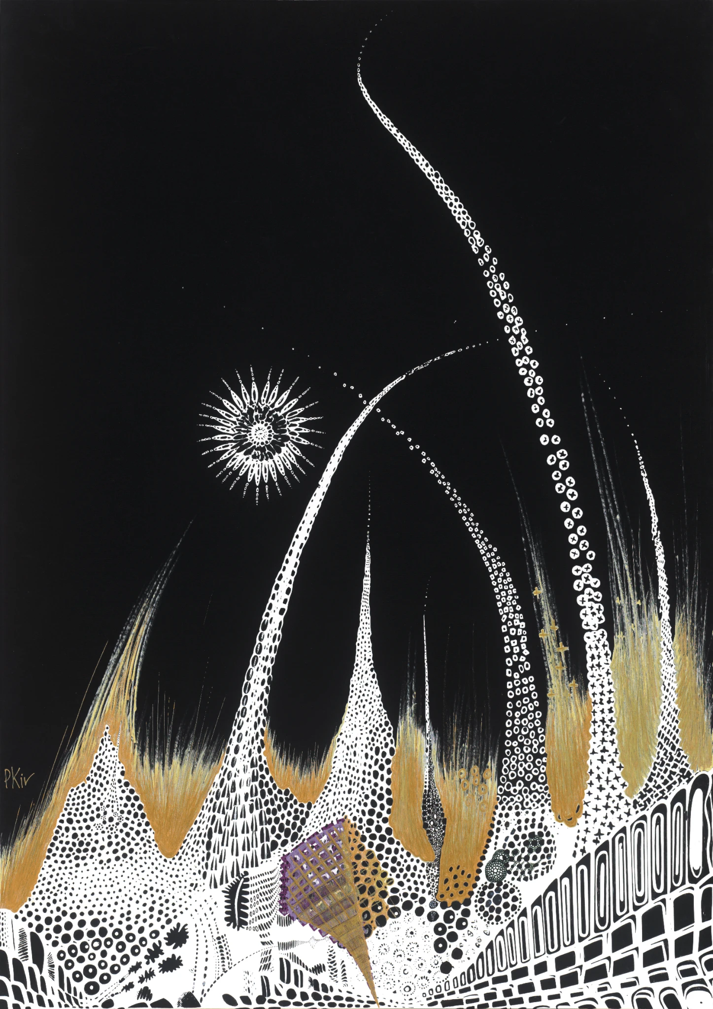 Print. Acrylic, metallic, pen