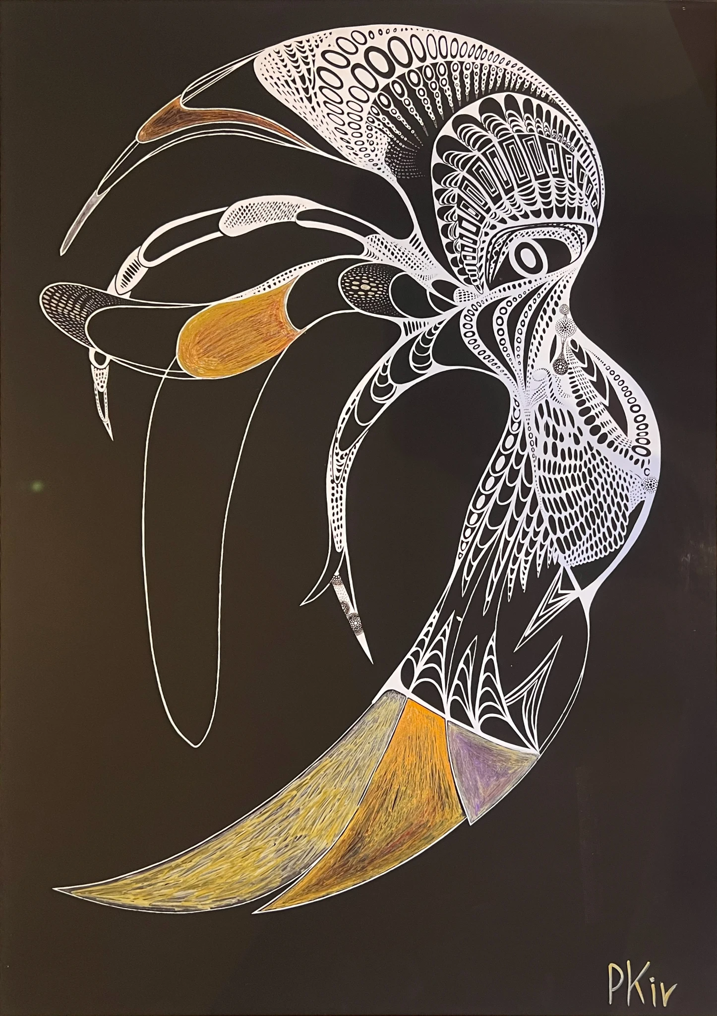 Paper, acrylic, metallic paints, metallic pen, fineliner