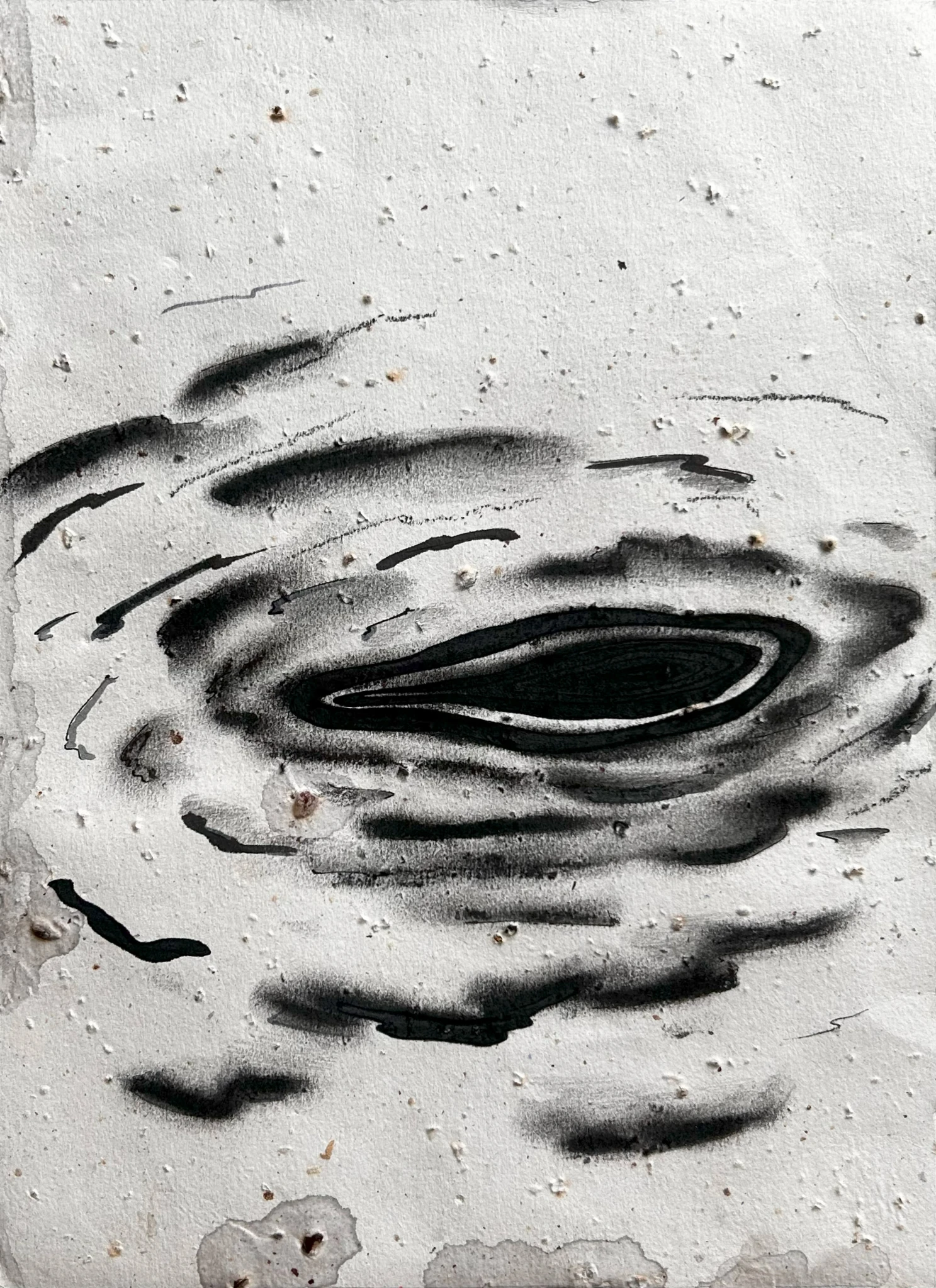 Mixed media, including colored pencils, ink, charcoal, and handmade paper from Peruvian Amazon fibers
