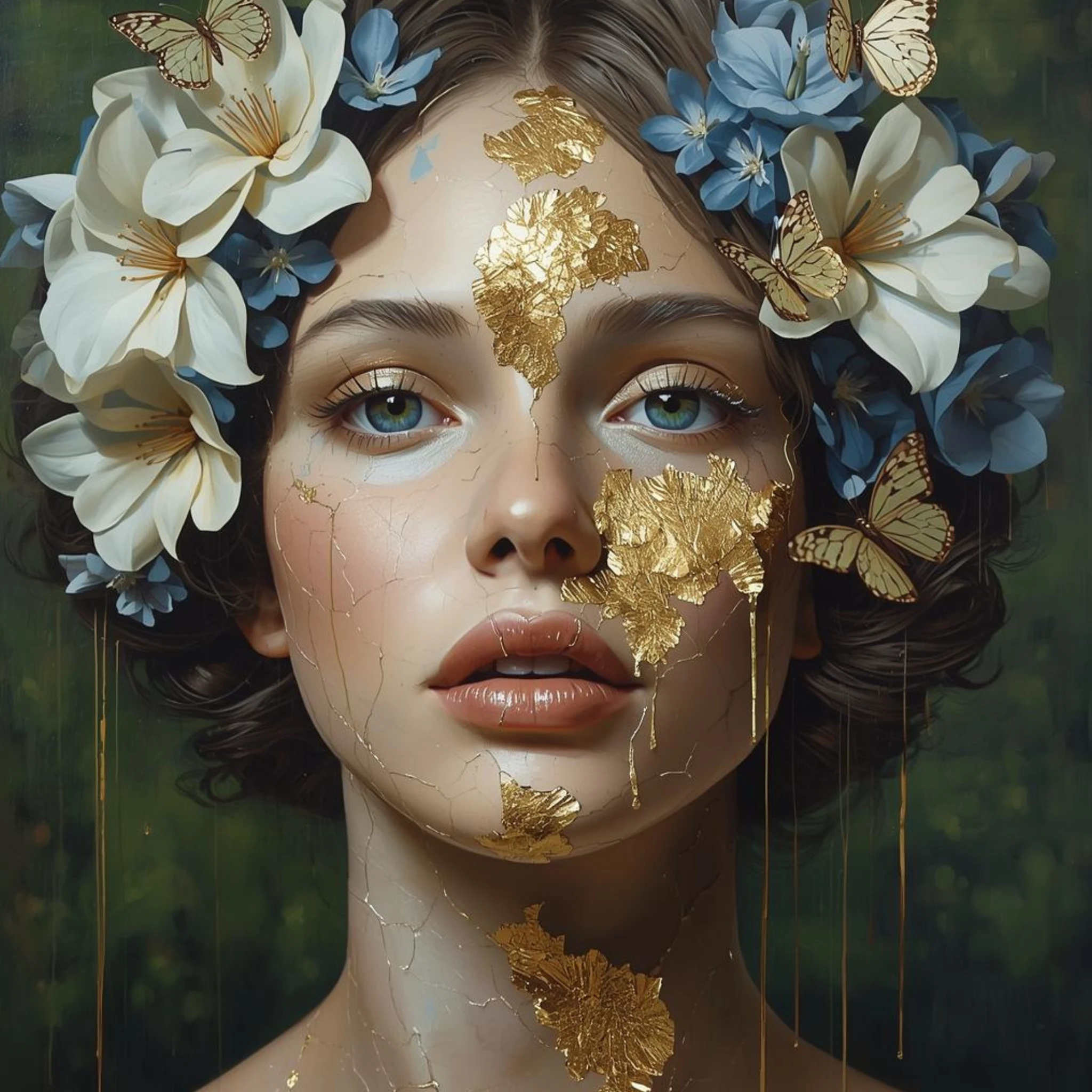 Mixed Media Ink & Oil Paint on Canvas with diamond dust and gold leaf