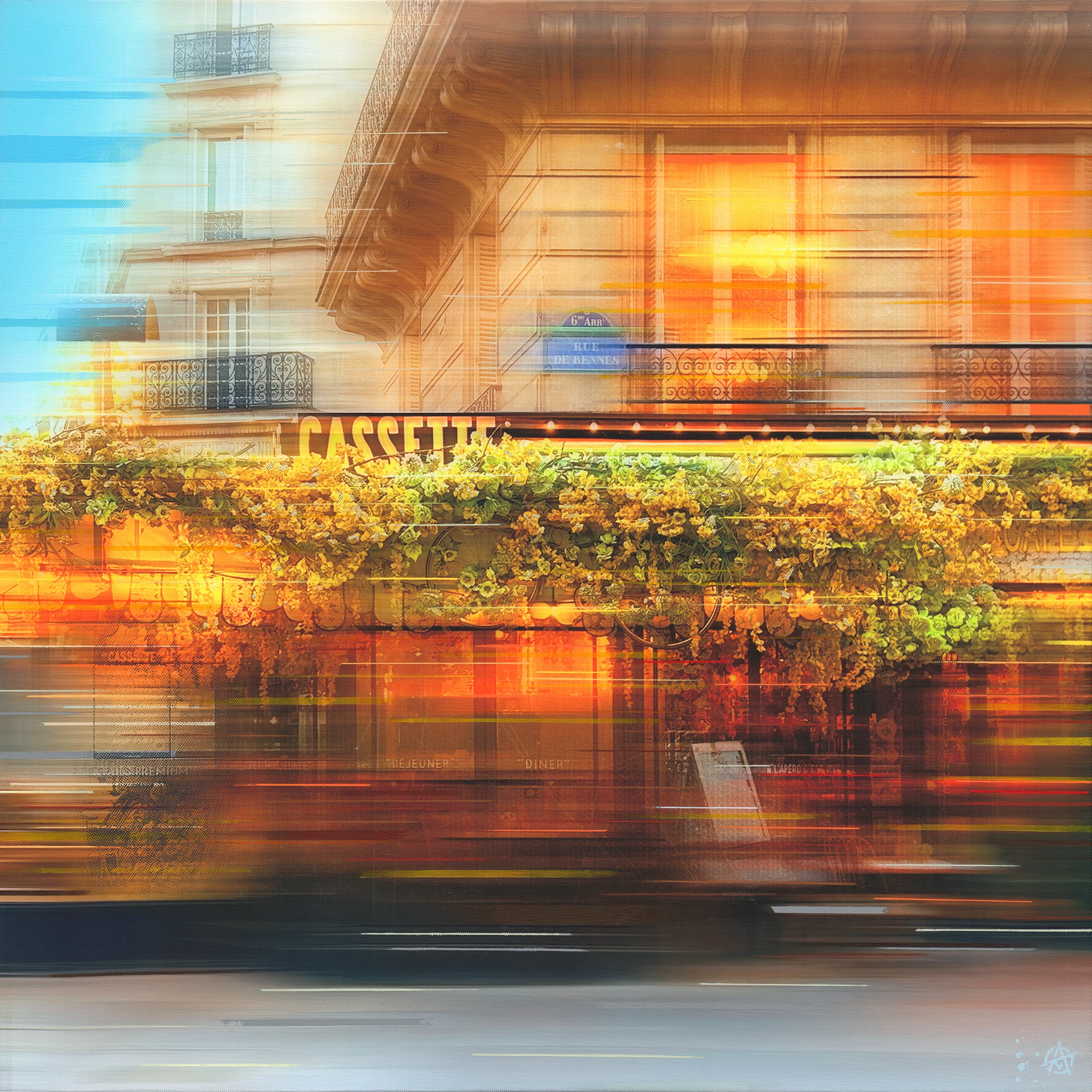 Original photography, giclée printed on to canvas then overlaid with acrylic and spray paints, screen printing and 22 carat gold leaf.