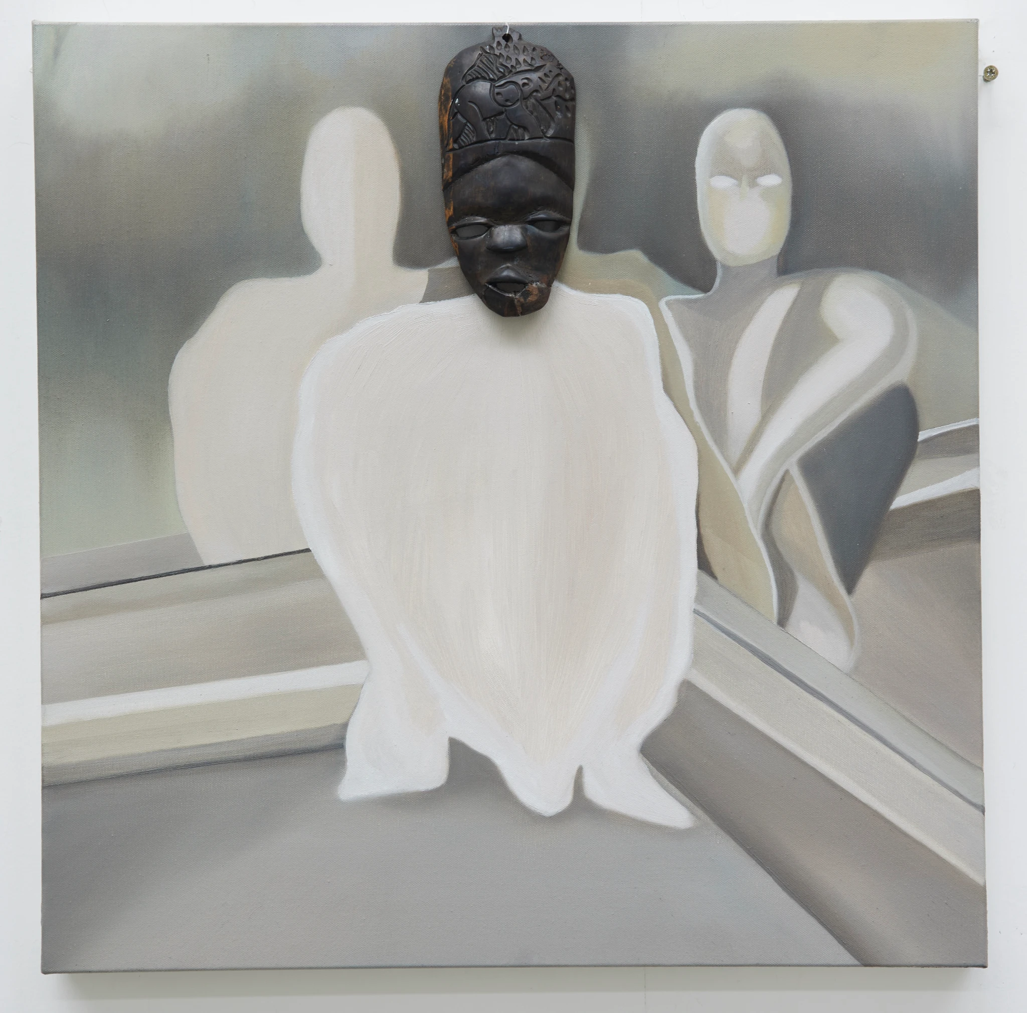 Wooden mask mounted on oil on canvas