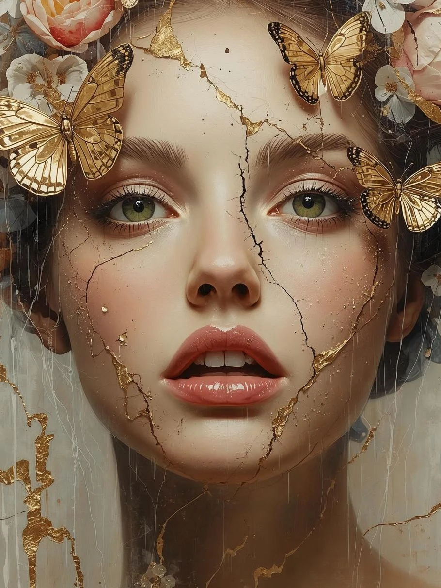 Mixed Media Ink & Oil Paint on Canvas with diamond dust and gold leaf
