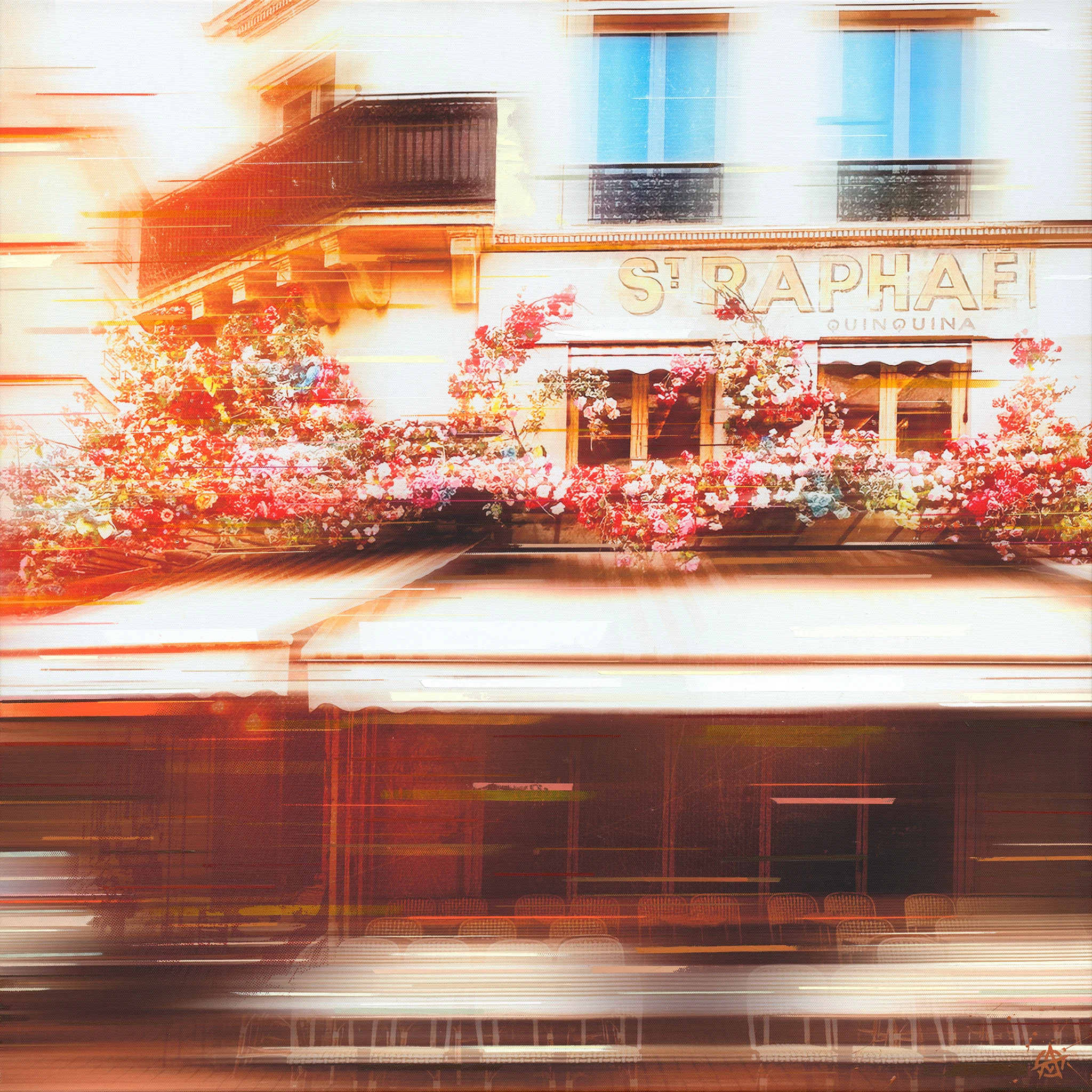 Original photography, giclée printed on to canvas then overlaid with acrylic and spray paints, screen printing and copper leaf.